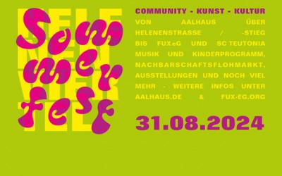 Zusammen mit unseren Nachbarinnen und Nachbarn feiern wir jährlich ein buntes Sommerfest im Helenenviertel mit Flohmarkt, Musik, Kinderprogramm und vielem mehr - direkt hinter unserem Mutterhaus (Max-Brauer-Allee 133) im Innenhof u...