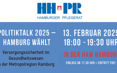 Im Namen der im Hamburger Pflegerat (HHPR) organisierten Berufsverbände und Fachgesellschaften aus der Pflege möchten wir Sie herzlich zu einer Podiumsdiskussion zum Thema „Versorgungssicherheit in der Metropolregion Hamburg“ einlad...